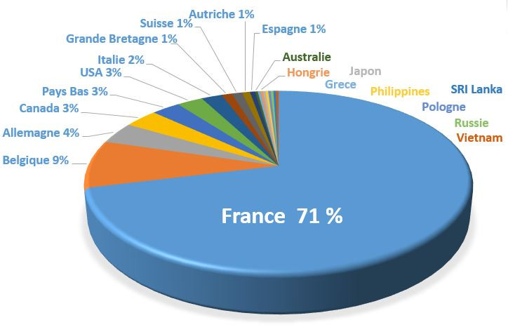 Les pèlerins étaient, assez logiquement, majoritairement français (à 71%), puis européens ( belges 9% – allemands 4%, néerlandais 3%). Les Canadiens sont un peu plus nombreux cette année (3%). Avec des nationalités différentes de l’année passée, les pèlerins sont venus du monde entier avec au moins un pèlerin des nationalités suivantes :