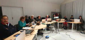 Ambiance studieuse mais conviviale pour cette première session de formation à l’application MA RANDO animée ce mardi 10 février par Michel.