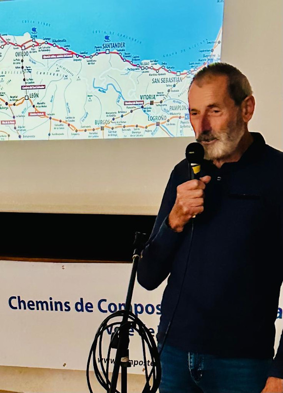 Puis, côté espagnol, Antoine, tout fraichement rentré de Compostelle, 2 jours auparavant, nous a raconté le Norte et le Primitivo qu’il a enchainés après la voie d’Arles depuis Auch, voie qu’il avait commencée l’année dernière.