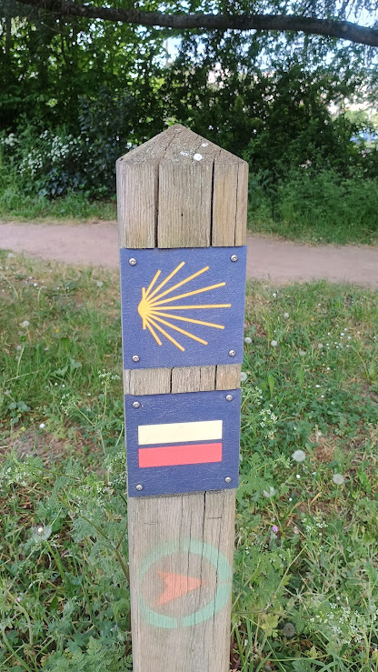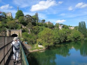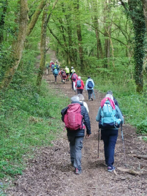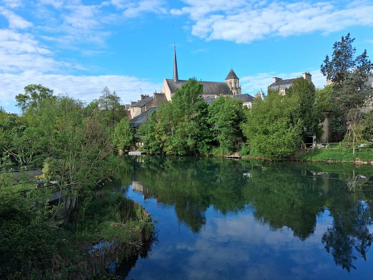 Nous continuons ensuite le chemin de Compostelle en sens inverse vers Poitiers à travers la vallée des Légendes et le sentier de la vallée du Clain. Nous arrivons vers 17 heures après 20 km de marche ensoleillée dans le ciel et dans les cœurs.
