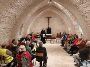 La journée de jeudi a débuté à 9h par une randonnée au départ de l’auberge de jeunesse accompagnés de nos amis poitevins pour parcourir à travers bois le chemin qui mène à l’abbaye Saint-Martin de Ligugé où nous étions attendus pour une visite du lieu à 11 heures.